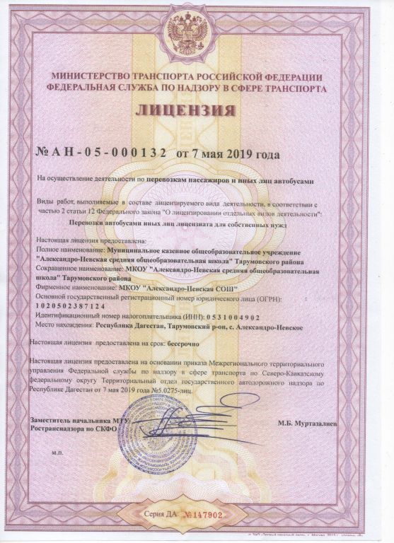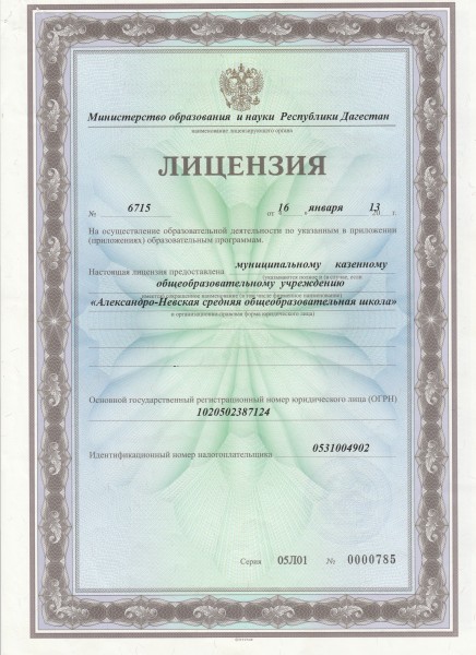 | Полное наименование образовательной организации* | Муниципальное казённое общеобразовательное учреждение "Александро-Невская средняя общеобразовательная школа" Тарумовского района Республики Дагестан |